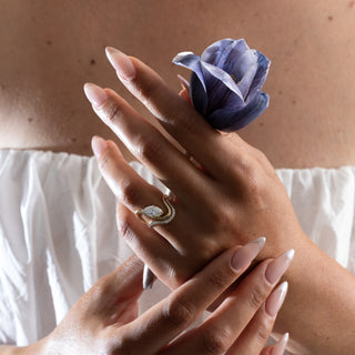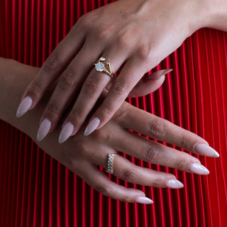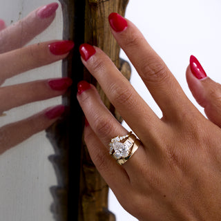 1.0CT-2.0CT Oval Cut Curved Unique Diamond Rings Classy With Matching Wedding Band