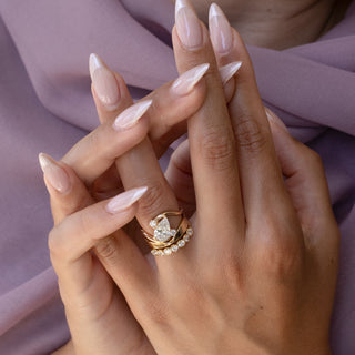 1.50ct Pear Diamond Unique Curved Engagement Ring With Matching Wedding Band