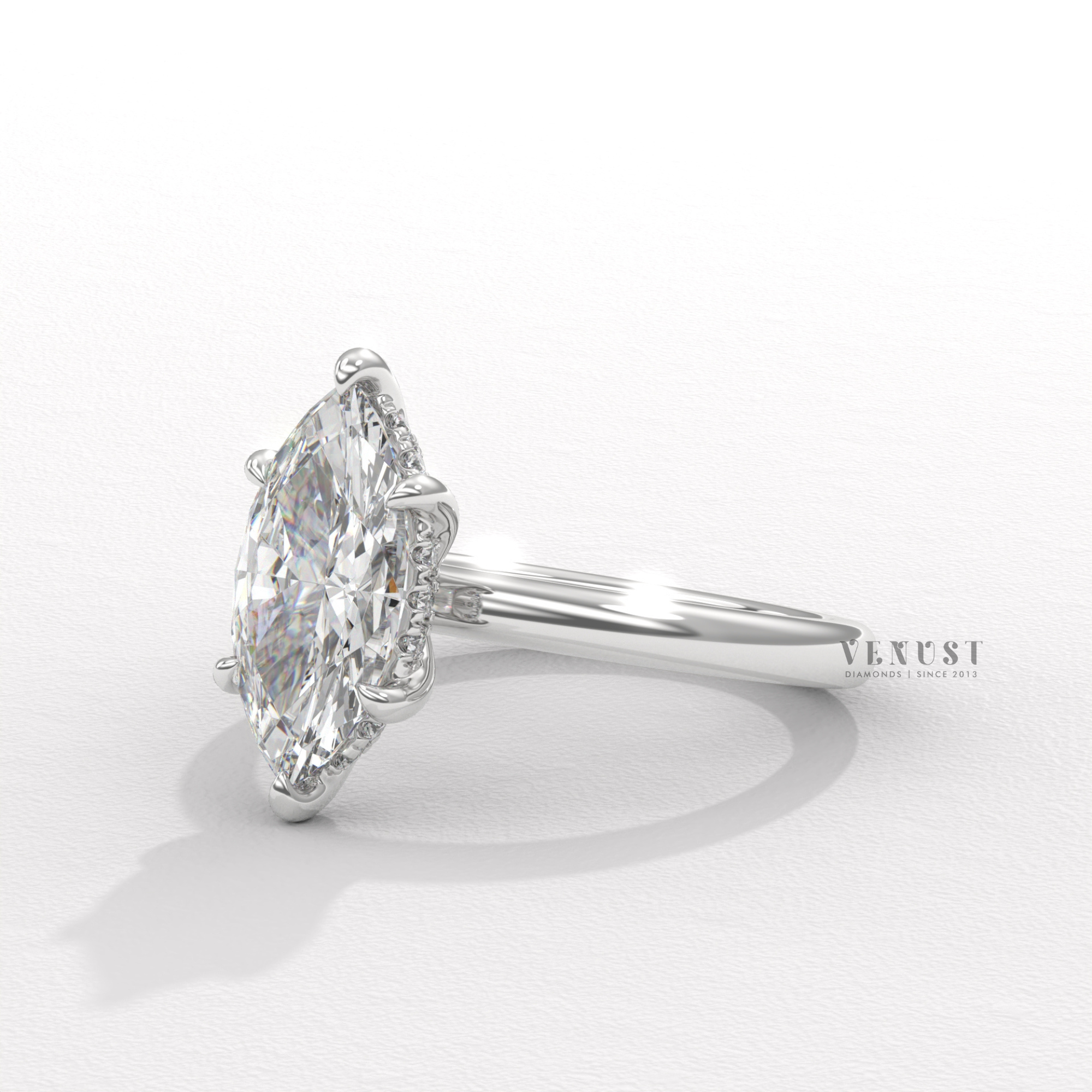 1.50CT Marquise Cut Moissanite Diamond Hidden Halo Solitaire Engagement Ring