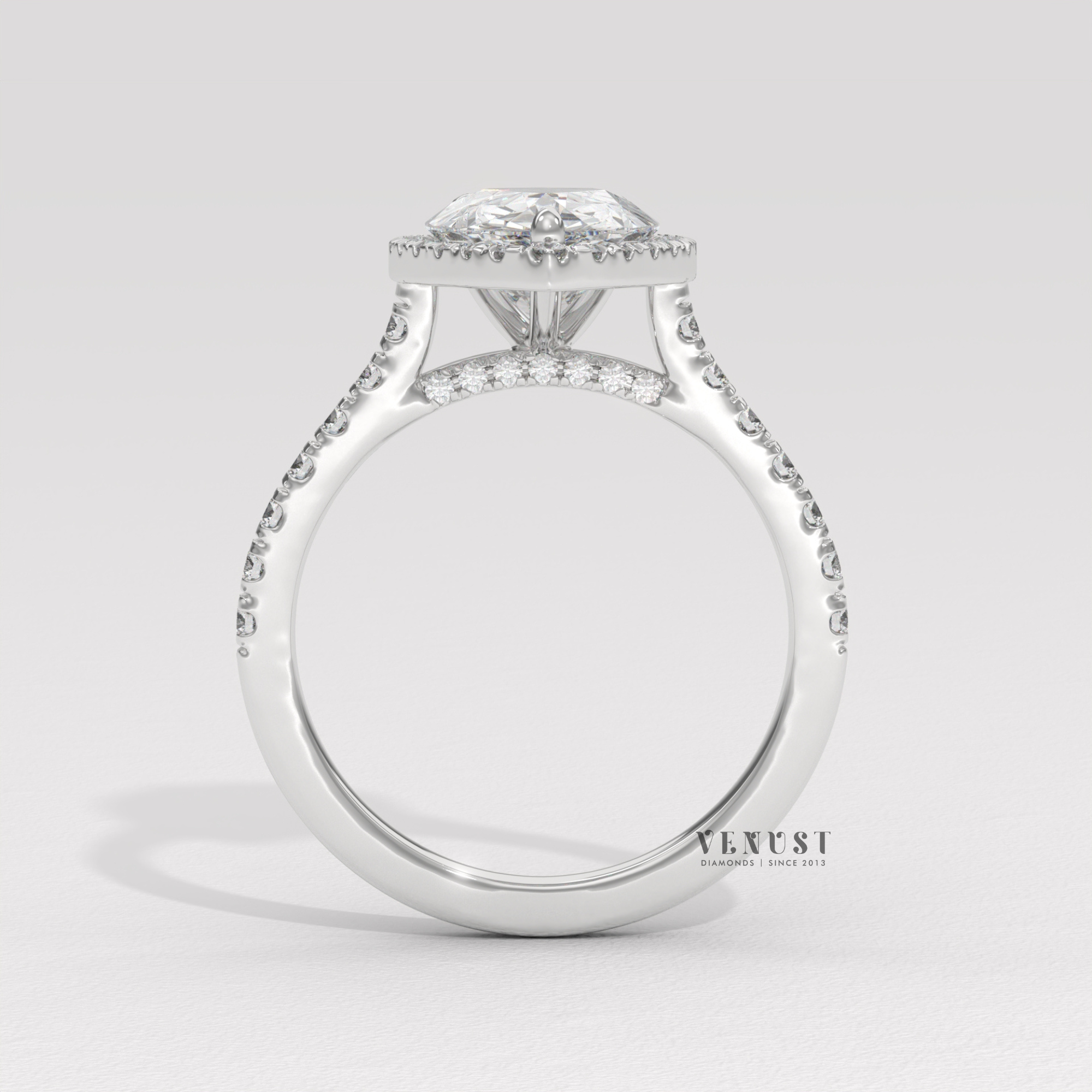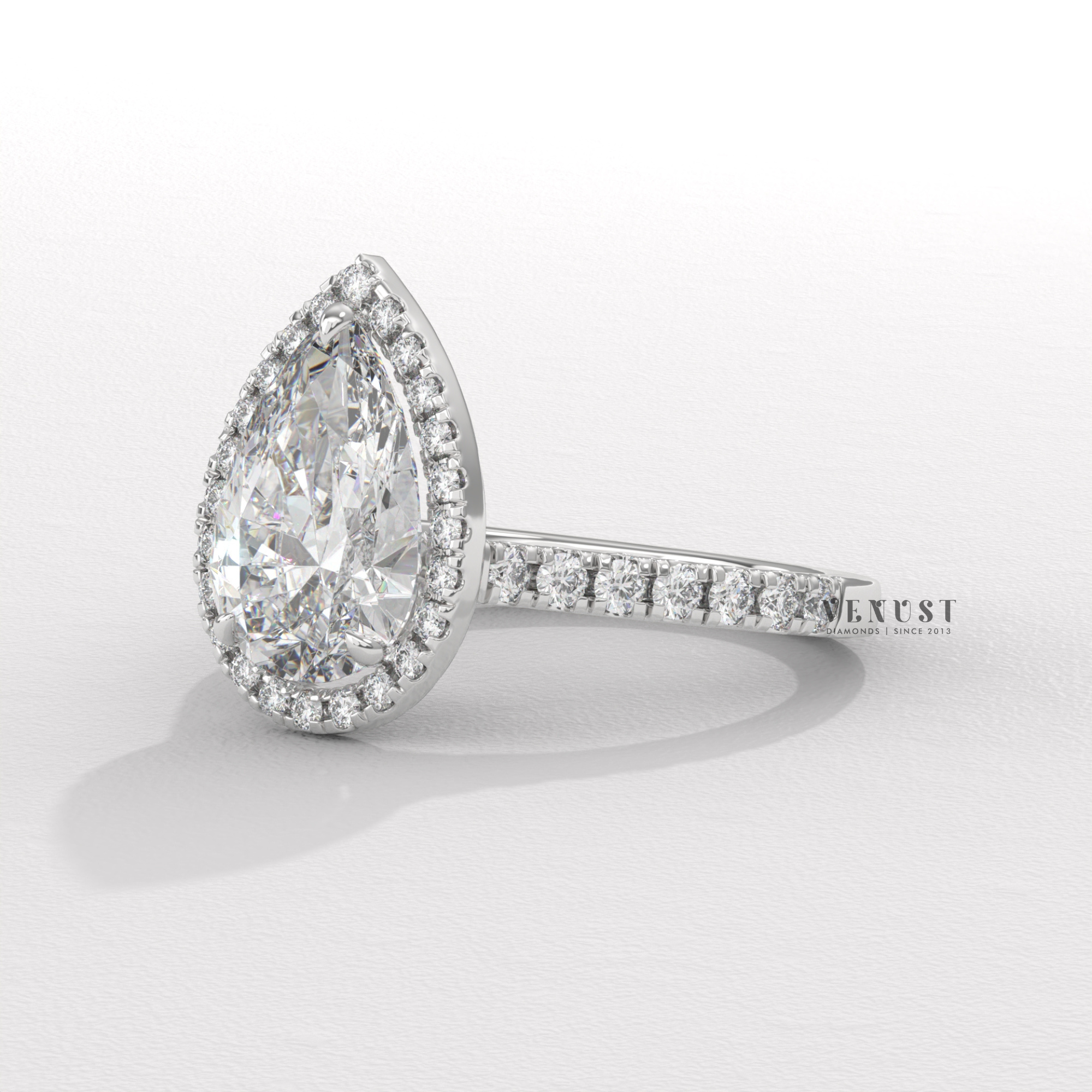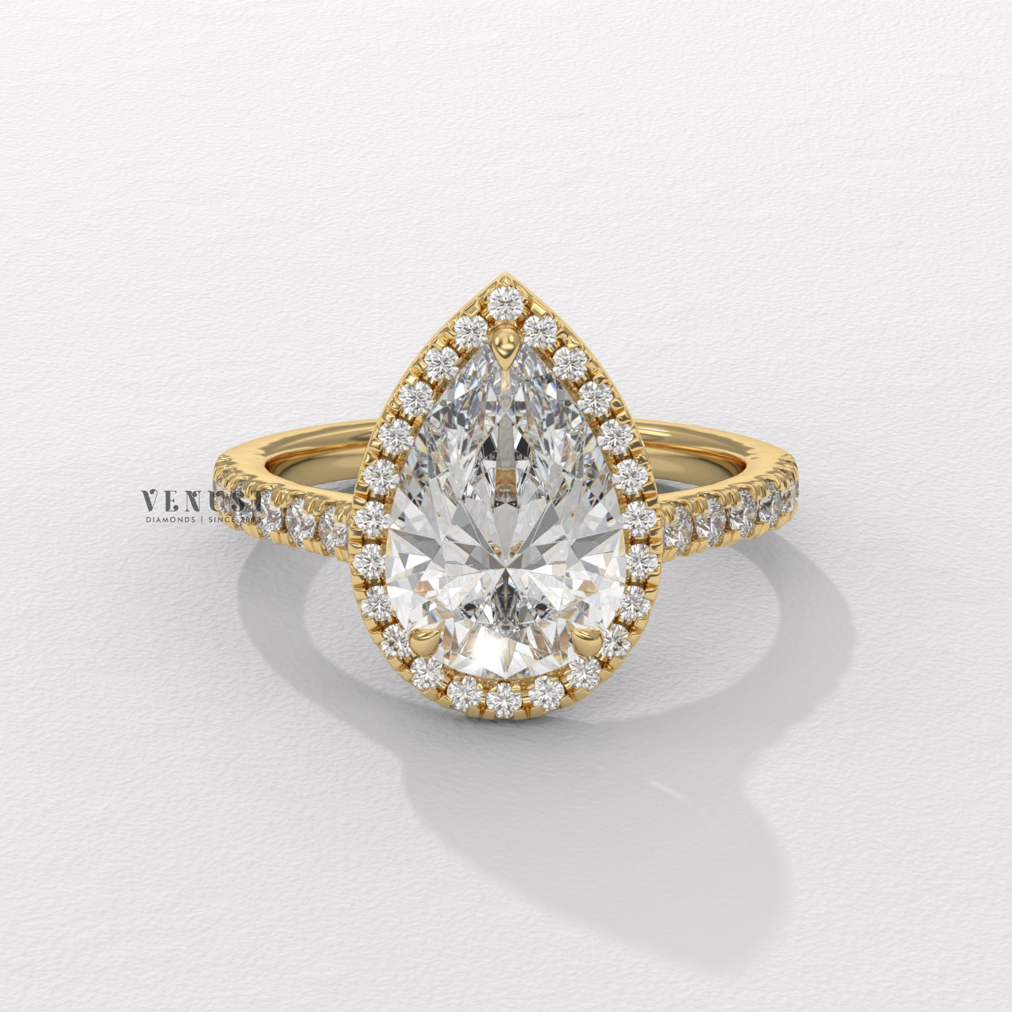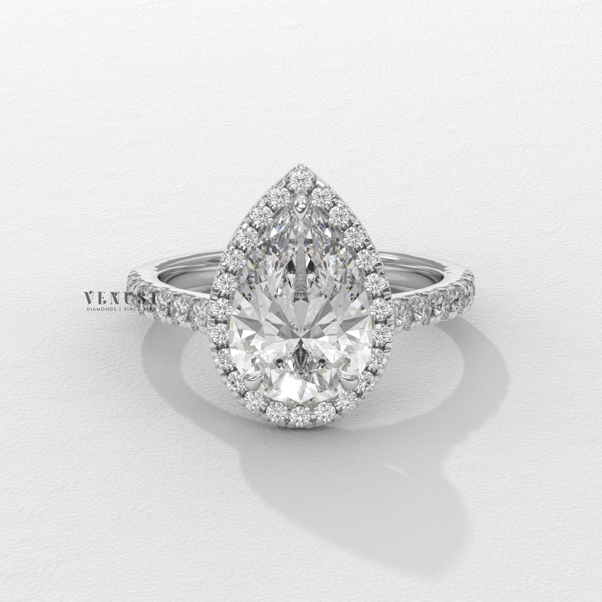 1.50CT Pear Shaped Moissanite Diamond Halo Pave Ring
