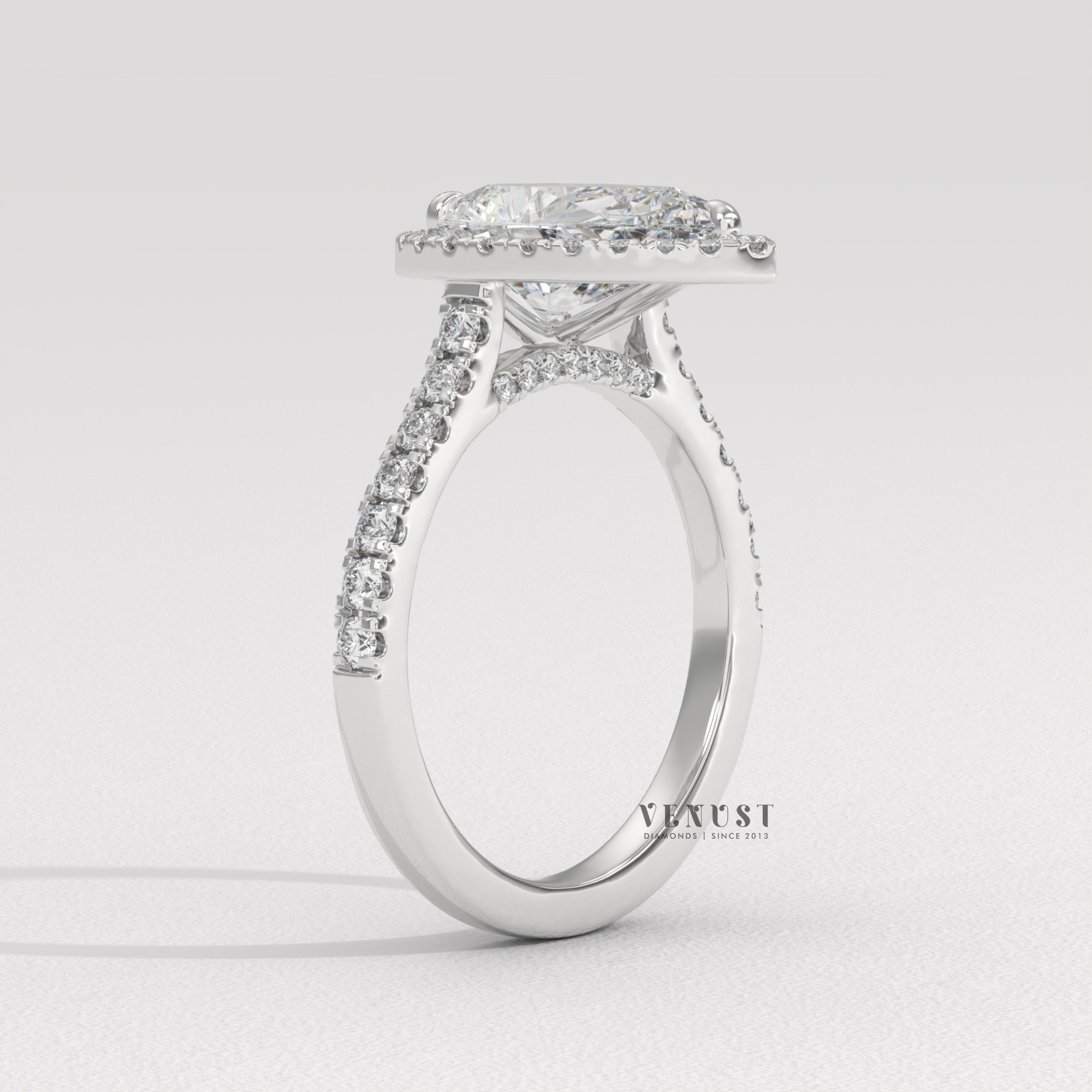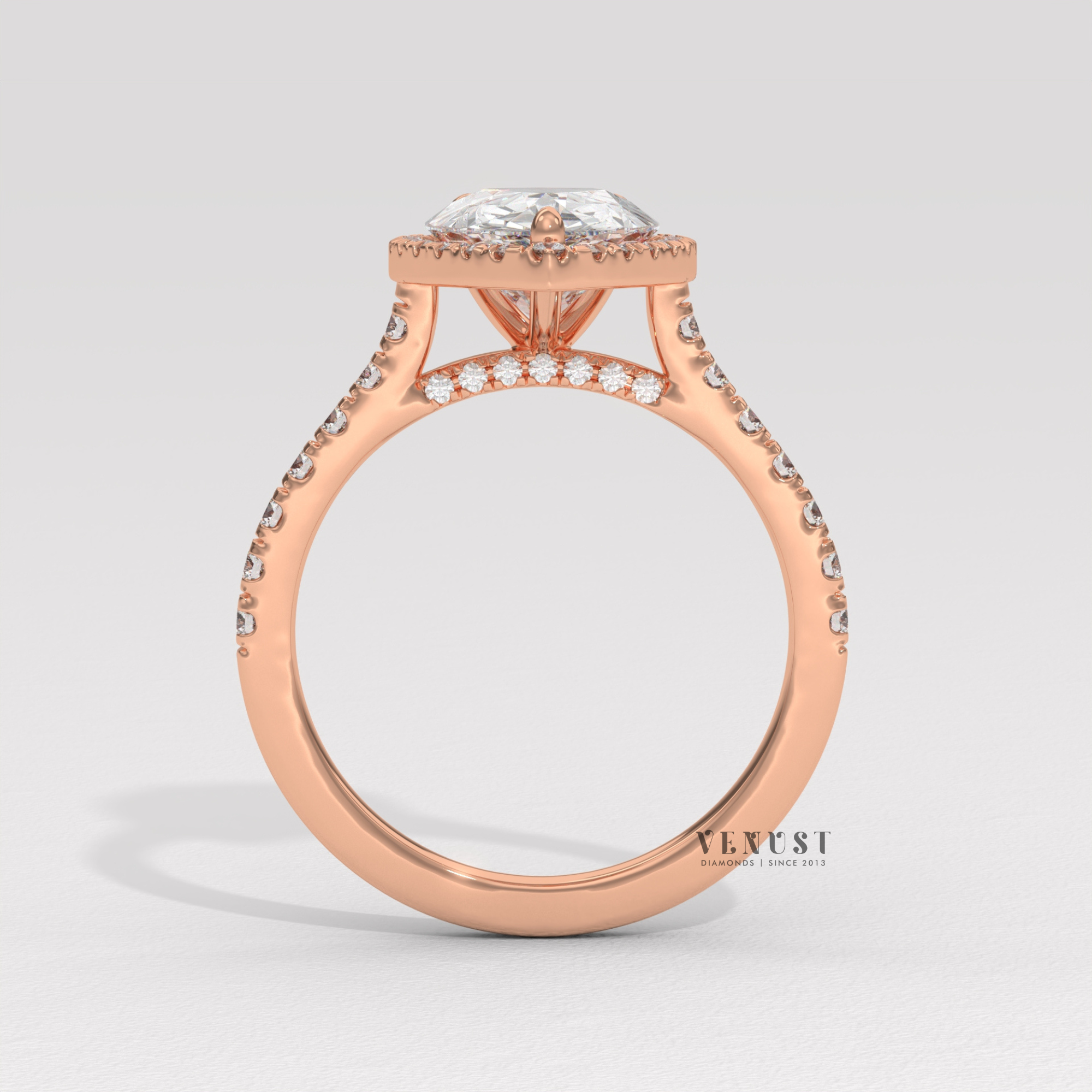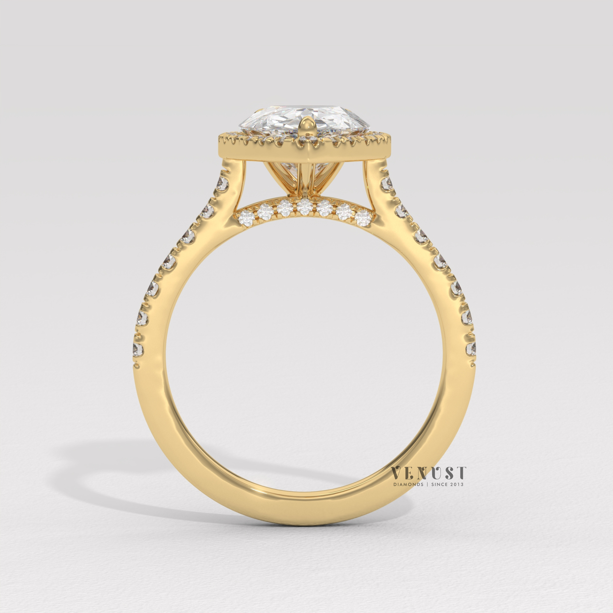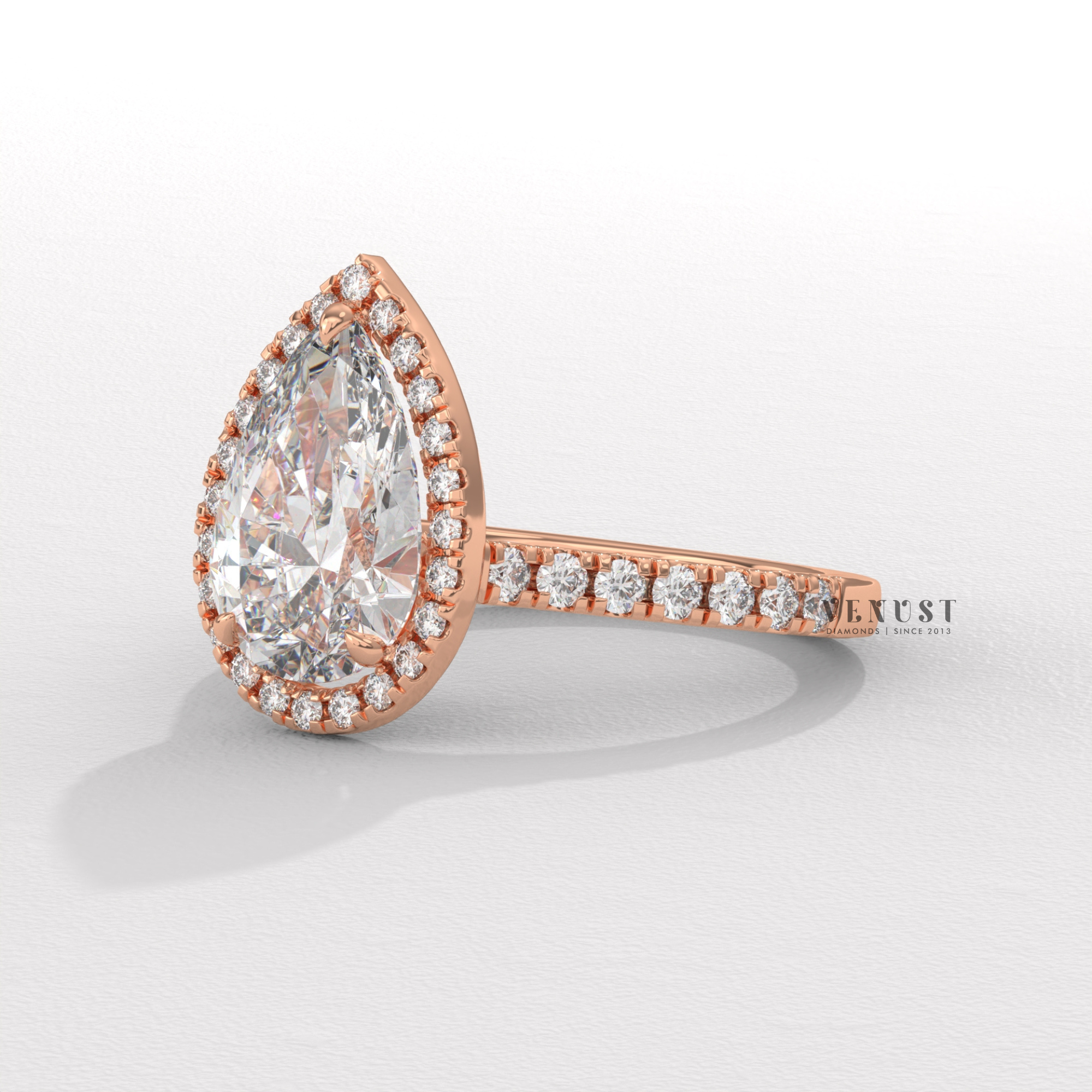 1.50CT Pear Shaped Moissanite Diamond Halo Pave Ring