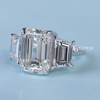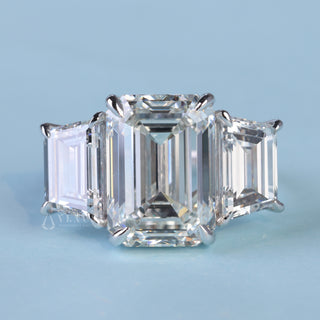 3.0CT Emerald Cut Moissanite Diamond Three Stone Engagement Rings