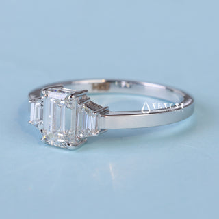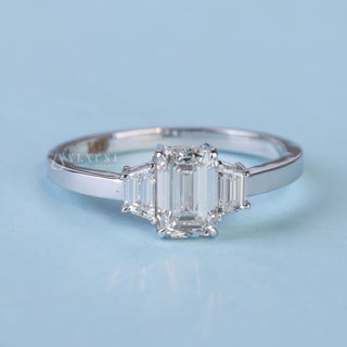 1.0CT Emerald Cut Moissanite Diamond Three Stone Engagement Rings