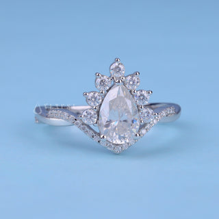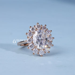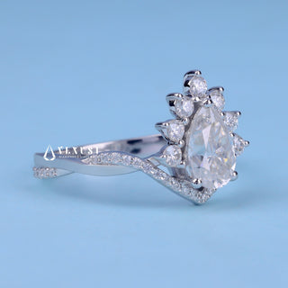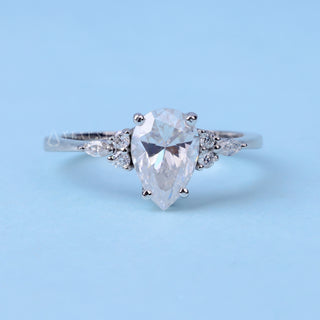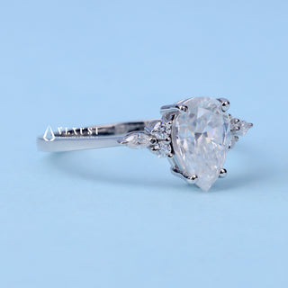 1.0CT Pear Cut Moissanite Diamond Cluster Engagement Ring