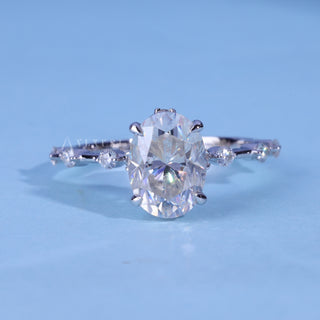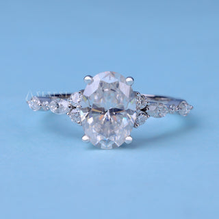 2.0CT Oval Cut Moissanite Diamond Cluster Engagement Ring