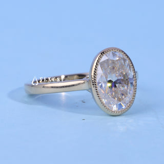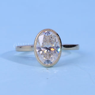 2.0CT Bezel Set Oval Moissanite Diamond Cathedral Engagement Rings
