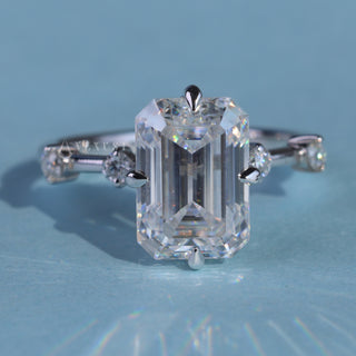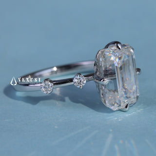 3.0CT Emerald Cut Moissanite Diamond Petite Pave Timeless Engagement Ring
