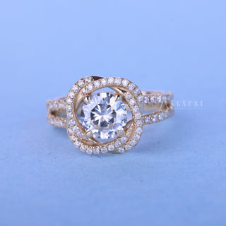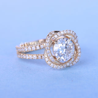 1.0CT Round Cut Moissanite Diamond Halo Split Shank Engagement Ring