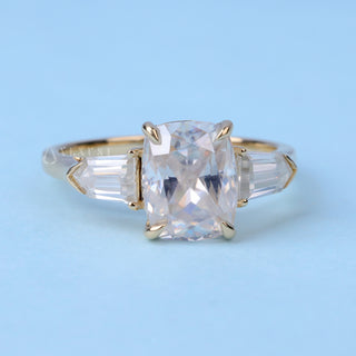 2.0CT Elongated Cushion Cut Moissanite Diamond Three Stone Engagement Rings