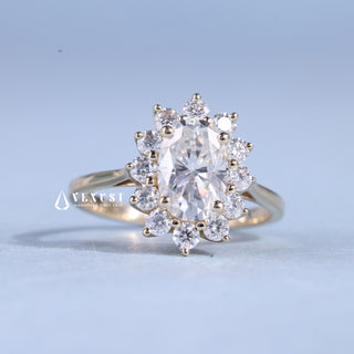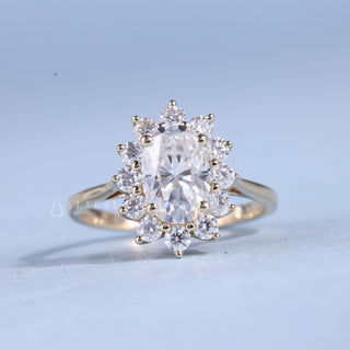 1.50CT Oval Cut Moissanite Diamond Cluster Engagement Ring