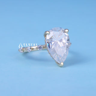 2.0CT Pear Cut Moissanite Diamond Hidden Halo Pave Engagement Ring