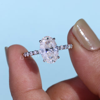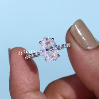 2.0CT Oval Cut Moissanite Diamond Hidden Halo Pave Engagement Ring