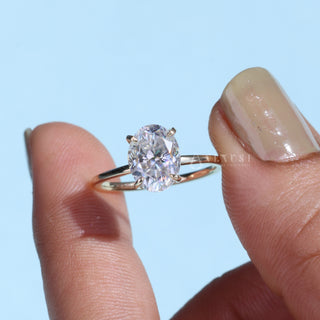 2.0CT Elongated Oval Cut Moissanite Diamond Hidden Halo Solitaire Engagement Ring