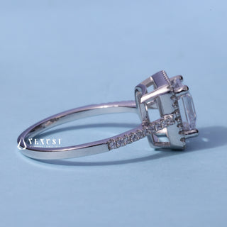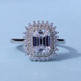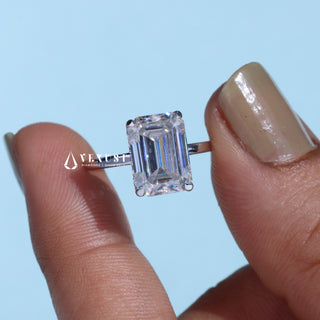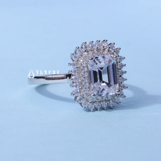 2.0CT Emerald Cut Moissanite Diamond Hidden Halo Solitaire Timeless Engagement Rings
