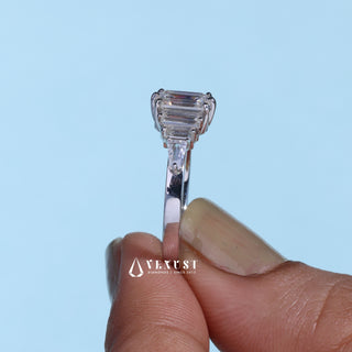 1.0CT Emerald Cut Moissanite Diamond Seven Stone Engagement Ring