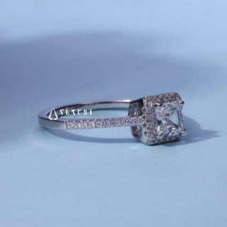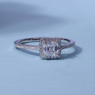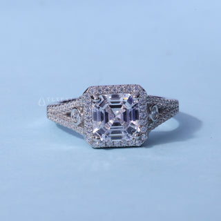 0.50CT Asscher Cut Moissanite Diamond Halo Pave Engagement Ring