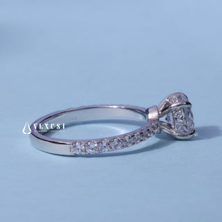 1.0CT Oval Cut Moissanite Diamond Hidden Halo Solitaire Engagement Ring