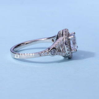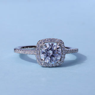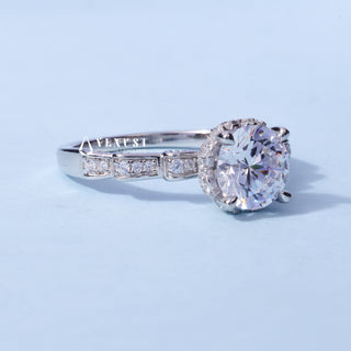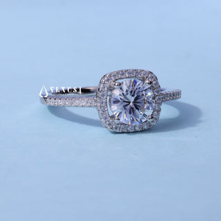 1.0CT Round Moissanite Diamond Halo Pave Engagement Ring
