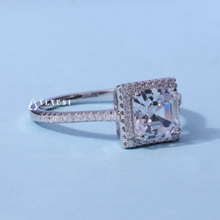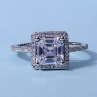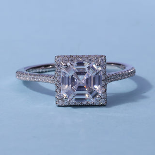 2.0CT Asscher Cut Moissanite Diamond Halo Pave Engagement Ring