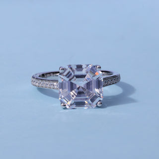 2.0CT Asscher Moissanite Diamond Channel Pave Engagement Ring