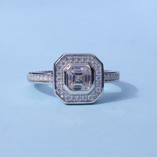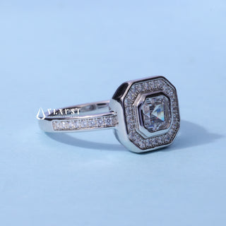 1.0CT Bezel Set Asscher Moissanite Diamond Halo Channel Pave Engagement Ring