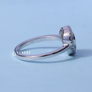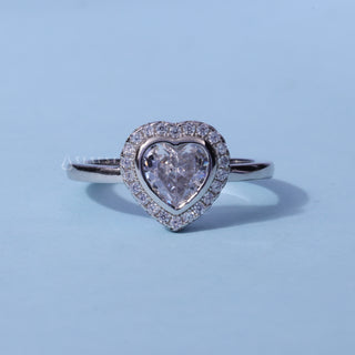 1.0CT Bezel Set Heart Moissanite Diamond Halo Solitaire Engagement Ring
