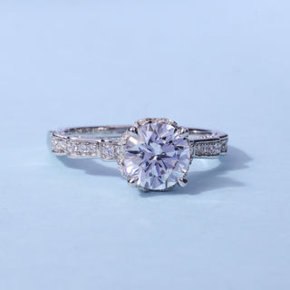 1.0CT Round Cut Moissanite Diamond Cluster Engagement Ring
