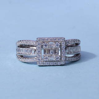 1.0CT Round And Baguette Moissanite Diamond Cluster Engagement Ring