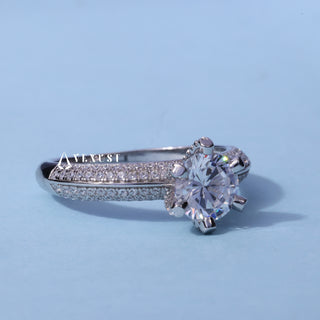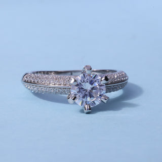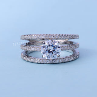 1.0CT Round Moissanite Diamond Three Row Pave Engagement Ring