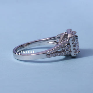 1.50CT Asscher Cut Moissanite Diamond Halo Split Shank Engagement Ring