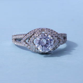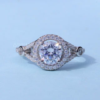 1.0CT Round Cut Moissanite Diamond Halo Split Shank Engagement Ring