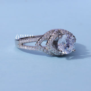 1.0CT Round Cut Moissanite Diamond Hidden Halo Pave Engagement Ring