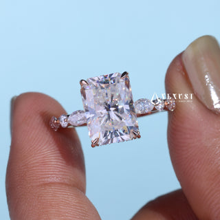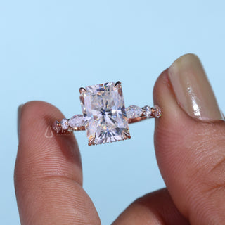 4.50CT Radiant Cut Moissanite Diamond Hidden Halo Pave Timeless Engagement Rings
