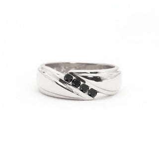 0.18 TCW Round Cut 2 Stone Black Diamond Moissanite Diamond Wedding Band For Men