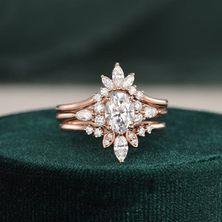 1.0 CT Oval Cut Cluster Art Deco Moissanite Bridal Ring Set