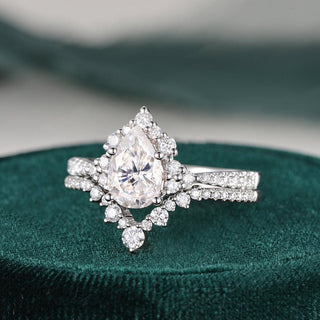 1.50 CT Pear Cut Cluster Moissanite Bridal Ring Set
