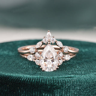1.50 CT Pear Cut Cluster Moissanite Bridal Ring Set