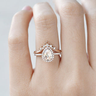 1.50 CT Pear Cut Halo Moissanite Bridal Ring Set